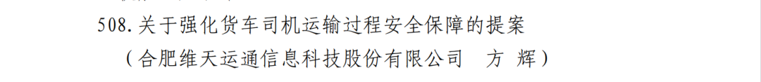 《关于强化货车司机运输过程安全保障的提案》聚焦货车司机这一新就业形态劳动者的核心关切,围绕运输过程中的安全风险防控、应急保障机制建设、数字化手段赋能等方面提出了系统性的建议。提案充分体现了维天运通(路歌)作为行业领先的全链路数字货运服务商,通过数字化赋能物流提质增效的同时,维护货车司机权益、推动行业健康发展的责任担当。